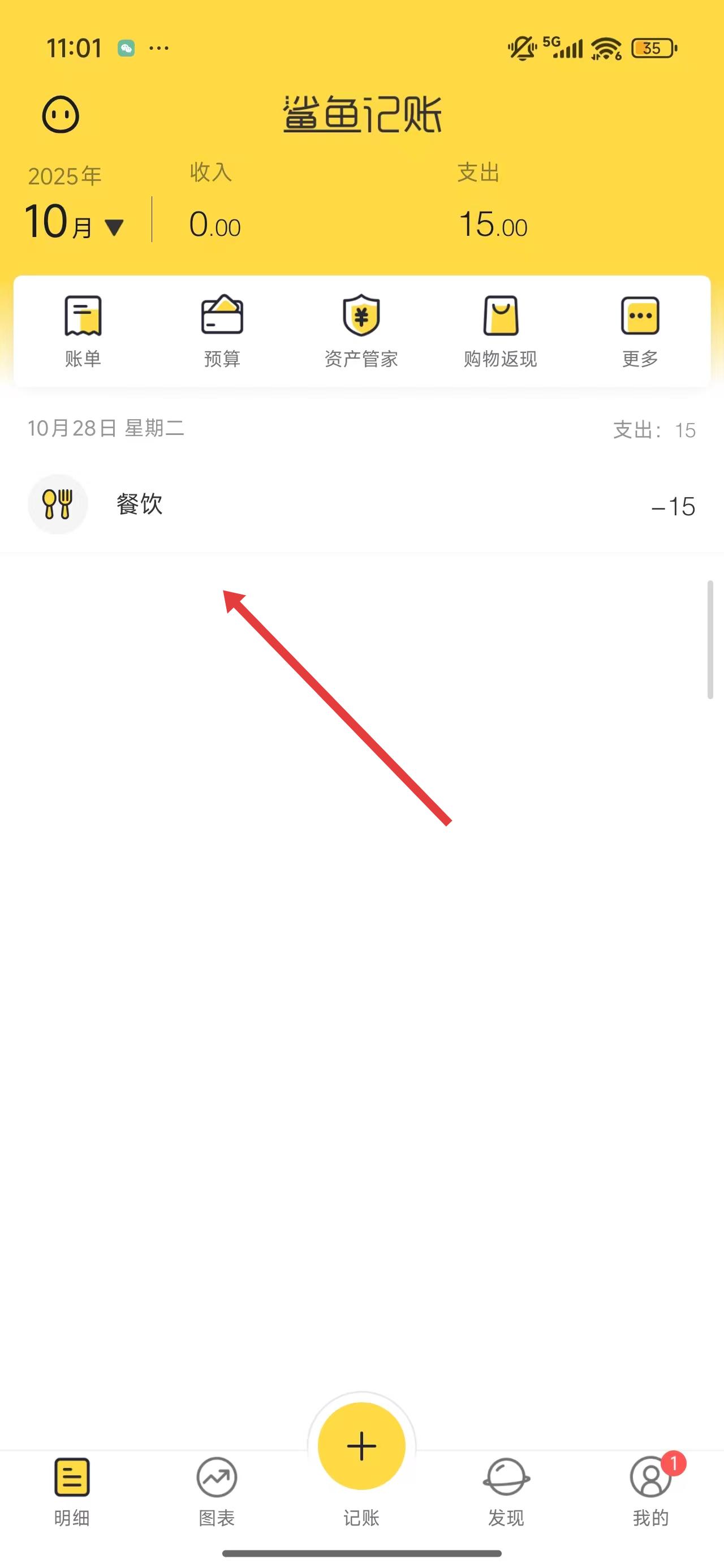 第1步,打開(kāi)【鯊魚(yú)記賬】,點(diǎn)擊【明細(xì)】即可看到所有記錄。