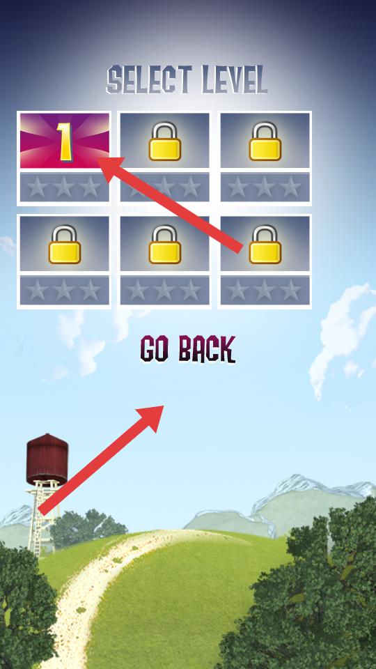 2、在關卡選擇界面,看到標有數(shù)字的可選擇關卡,點擊該關卡,進入游戲游玩場景,若想返回上一界面,點擊【GO BACK】。