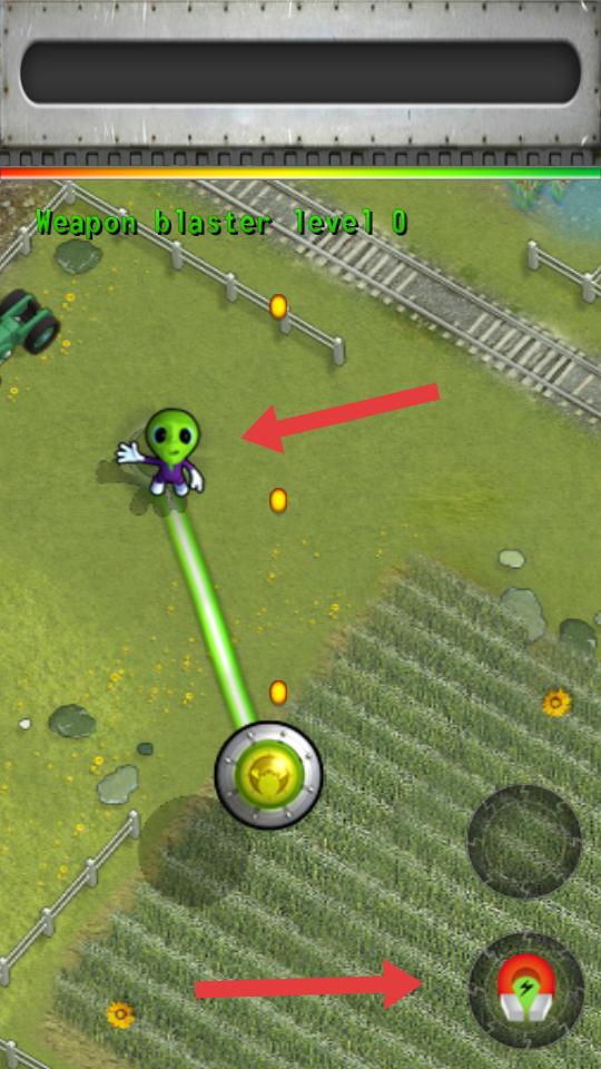 3、進入游戲游玩場景后,看到外星人角色,操控角色移動,同時可利用右側(cè)的道具,比如帶有磁鐵圖標的道具,輔助進行游戲操作,收集場景中的物品。