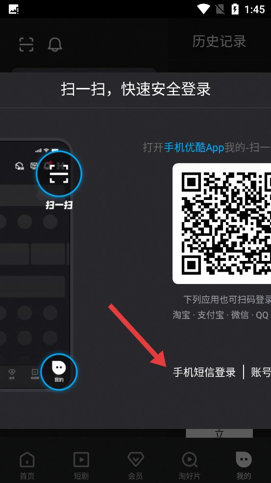 2、進(jìn)入登錄界面,有掃一掃快速登錄,也可選手機(jī)短信登錄,借助常用APP掃碼或短信,便捷完成登錄。