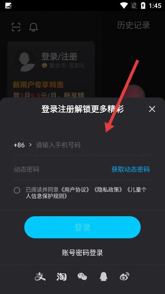 3、選擇手機(jī)短信登錄后,輸入手機(jī)號碼、獲取動(dòng)態(tài)密碼,勾選協(xié)議,點(diǎn)擊登錄,即可解鎖更多精彩內(nèi)容,完成賬號登錄。