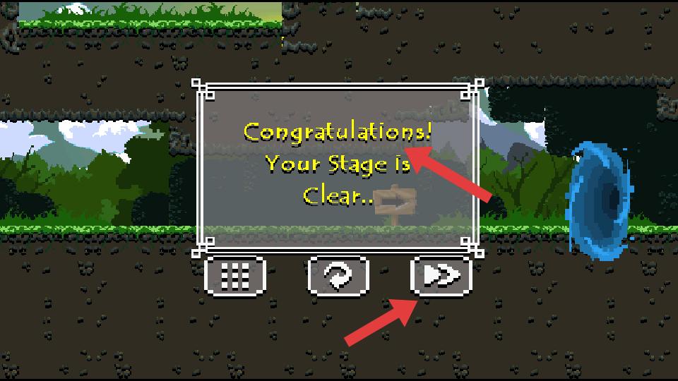 4、成功擊敗敵人并完成關卡任務后,會出現(xiàn)游戲的提示界面,點擊界面上的箭頭按鈕,進入下一個關卡或返回關卡選擇界面,繼續(xù)游戲挑戰(zhàn)。