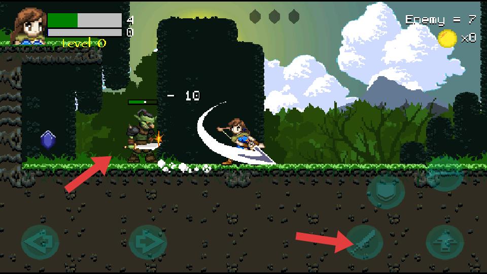 3、進入戰(zhàn)斗場景后,操控角色移動,遇到敵人時,點擊下方的攻擊按鈕,對敵人發(fā)起攻擊,擊敗敵人,同時注意收集場景中的物品。