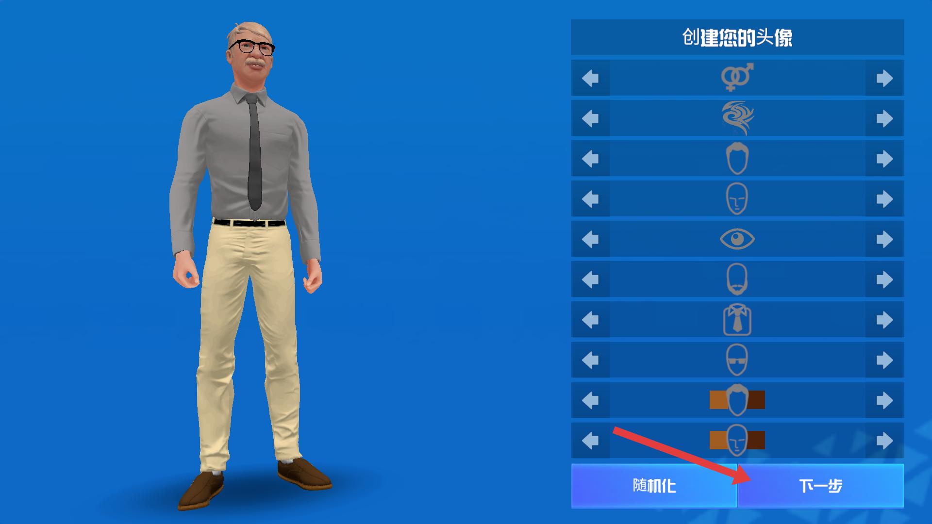 2、進(jìn)入創(chuàng)建頭像環(huán)節(jié),可通過右側(cè)選項(xiàng)調(diào)整性別、發(fā)型、面部等特征,打造專屬形象,調(diào)整完畢后點(diǎn)擊下一步,繼續(xù)游戲流程。