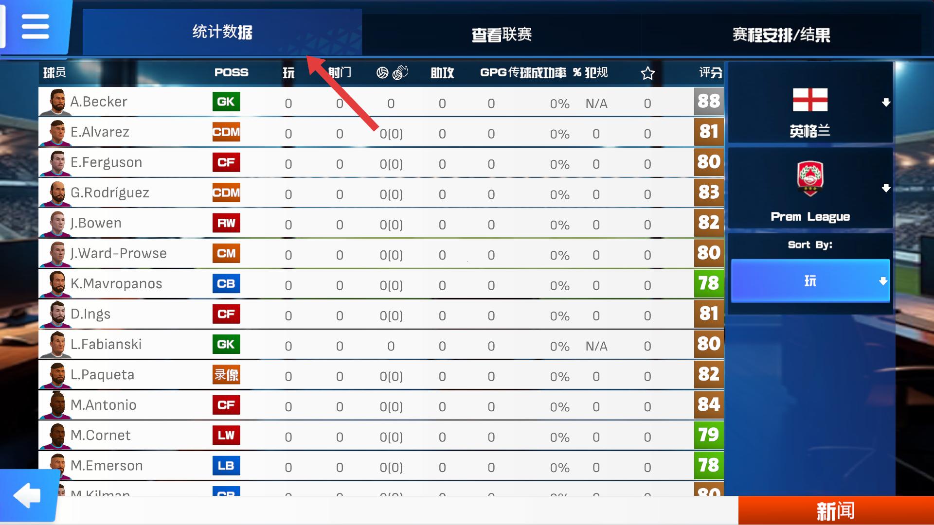 一線隊(duì)足球經(jīng)理怎么查看球員數(shù)據(jù)