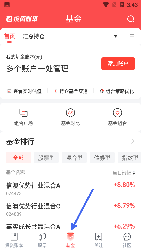 點擊“添加賬戶“按鈕,添加您的基金賬戶。