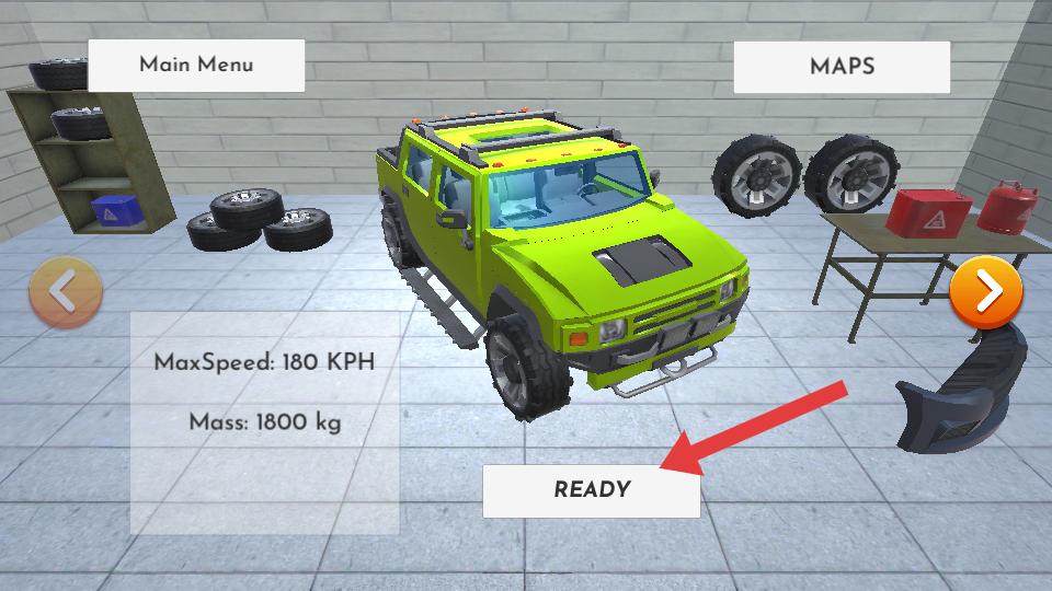 2、接著會(huì)看到車輛選擇界面,有不同車輛可選,選好后點(diǎn)擊READY,就可以進(jìn)入游戲場(chǎng)景。