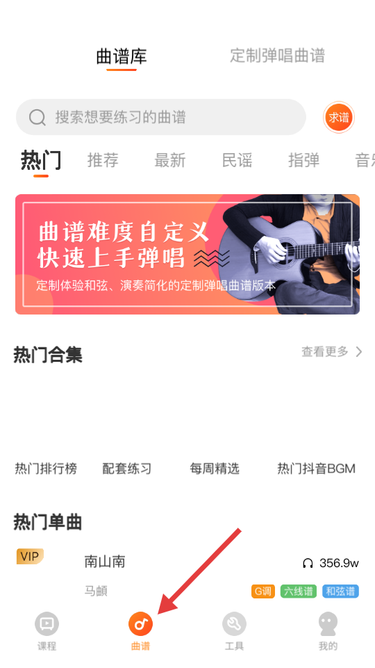 2、曲譜頁面含搜索與求譜功能,分熱門等類別,支持曲譜難度自定義呈現(xiàn)熱門合集與單曲滿足多樣練習(xí)需求。