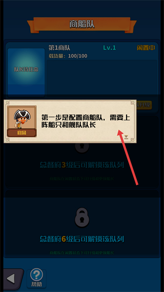 1、配置商船隊時需要上陣船只和艦隊隊長,逐步解鎖不同隊列,發(fā)展貿易艦隊,開展海上貿易。