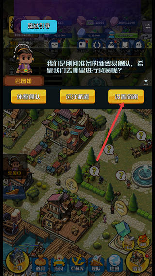 3、在主城界面可設置商船,準備貿易艦隊,選擇休整艦隊、遠洋派遣或設置商船,開展貿易活動。