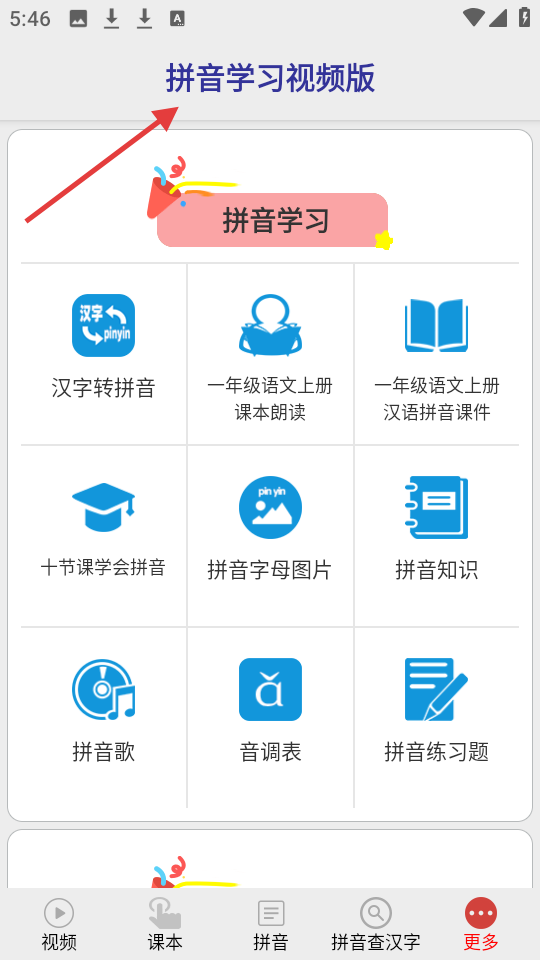 3、拼音學習視頻版頁面,提供漢字轉拼音、拼音歌等多樣學習內容,以視頻形式助力拼音學習。