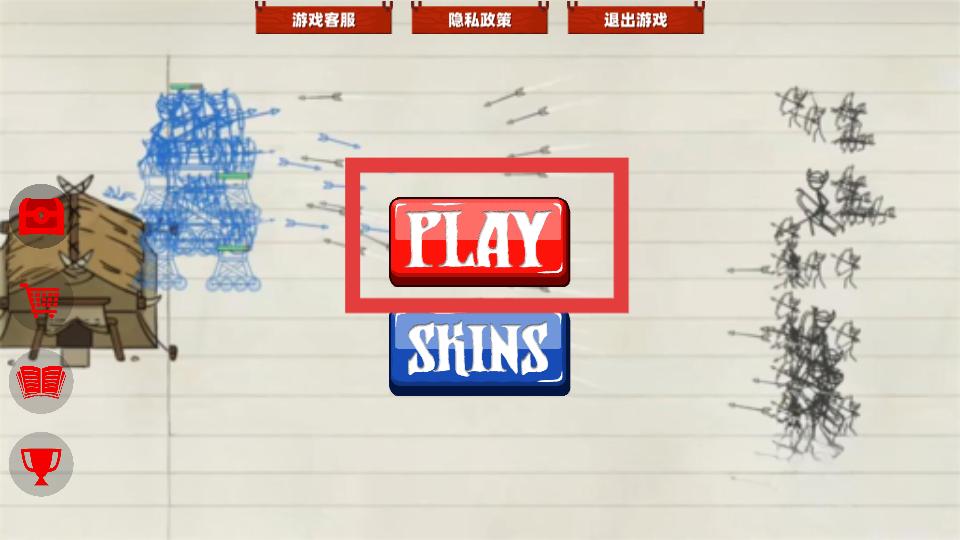 1、玩家下載游戲之后然后點擊進(jìn)入游戲,在游戲主界面點PLAY紅色按鈕,即可進(jìn)入游戲,開啟火柴人軍團爭霸之旅。