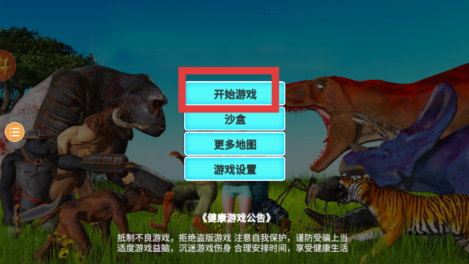 1、游戲主界面點(diǎn)擊開(kāi)始游戲按鈕,玩家即進(jìn)入游戲戰(zhàn)斗場(chǎng)景,準(zhǔn)備體驗(yàn)動(dòng)物與其他勢(shì)力或動(dòng)物之間的戰(zhàn)斗模擬。