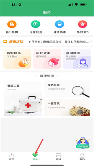 2、服務(wù)板塊有基公機(jī)構(gòu)、醫(yī)療地圖等功能,健康活動(dòng)多,還有癥狀自查、中醫(yī)體質(zhì)辨識(shí)等健康管理工具,助力健康管理。