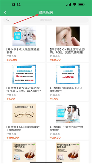 4、健康服務(wù)板塊有眼健康檢查、OK鏡咨詢等開學(xué)季優(yōu)惠項(xiàng)目,涵蓋配鏡、近視防控等,助力視力健康管理。