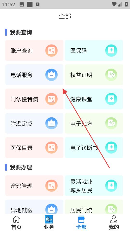 3、在全部頁面的我要查詢分區(qū),瀏覽賬戶查詢、醫(yī)保碼等服務(wù),選擇感興趣的查詢項(xiàng),如權(quán)益證明,點(diǎn)擊進(jìn)入查詢相關(guān)信息。