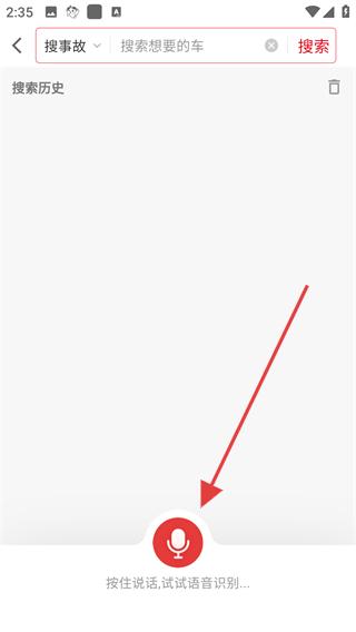 4、若需精準搜索車輛進入搜索頁面,可輸入車輛名稱進行搜索,也可使用語音識別功能,按住說話按鈕,通過語音輸入搜索需求,快速查找想要的車輛。