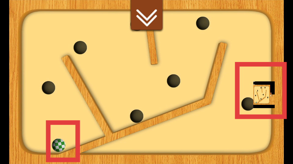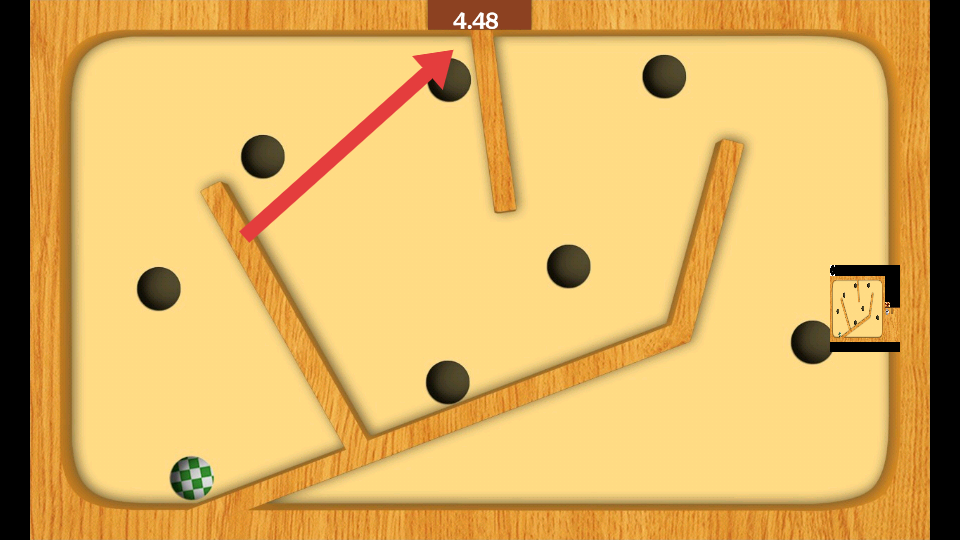 2、進入關(guān)卡后通過傾斜設(shè)備或其他操作方式,控制迷宮中綠白格紋小球的移動方向,引導(dǎo)小球在迷宮中前進,使小球順利到達終點。
