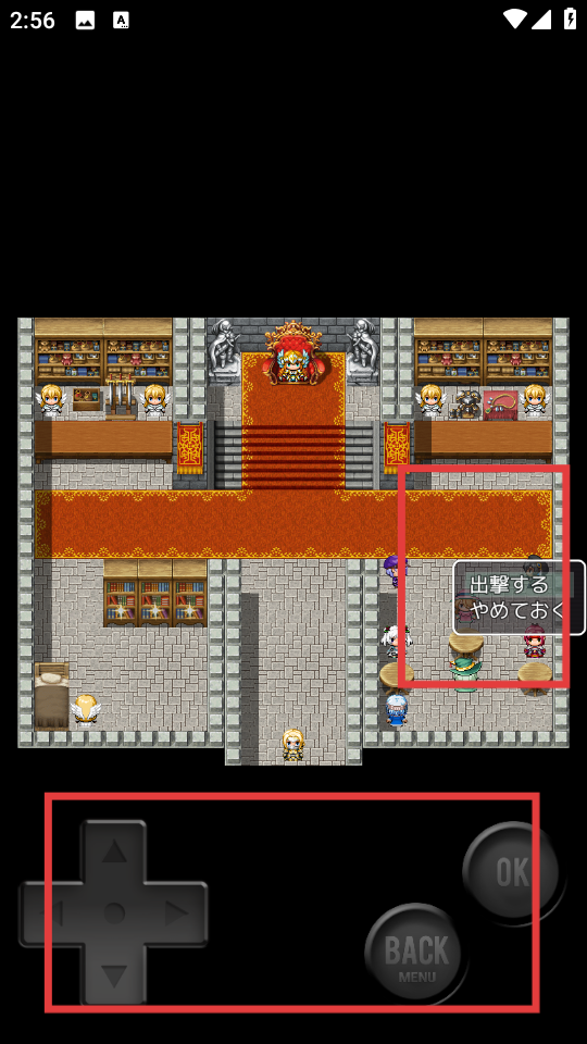 4、完成角色命名后,會(huì)來(lái)到城堡內(nèi)的場(chǎng)景,在場(chǎng)景中找到出擊相關(guān)選項(xiàng),通過(guò)下方的虛擬方向鍵操控角色移動(dòng),靠近并觸發(fā)出擊選項(xiàng),即可帶領(lǐng)角色離開城堡。