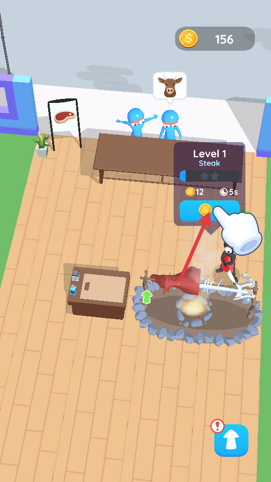1、首先要接待顧客,顧客會來到燒烤店,點擊顧客對應的區(qū)域,為其提供燒烤服務,完成后可獲得金幣,通過不斷接待顧客積累初始金幣。