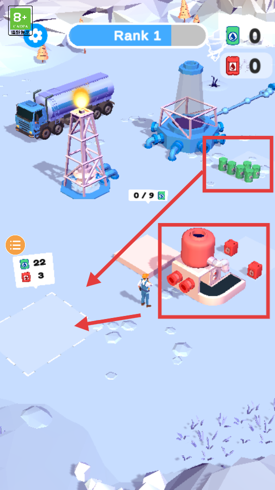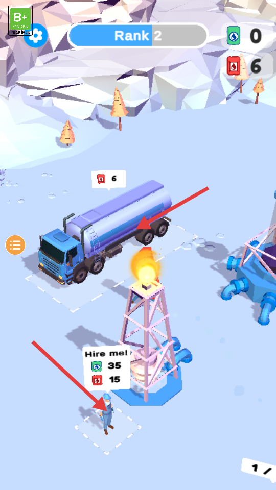 3、若看到Hire me的提示可花費(fèi)相應(yīng)資源雇傭工人,工人能協(xié)助進(jìn)行石油開采、運(yùn)輸?shù)裙ぷ?,提升油田的運(yùn)營(yíng)效率,讓資源獲取更高效,同時(shí)可借助油罐車前往下一關(guān)卡。