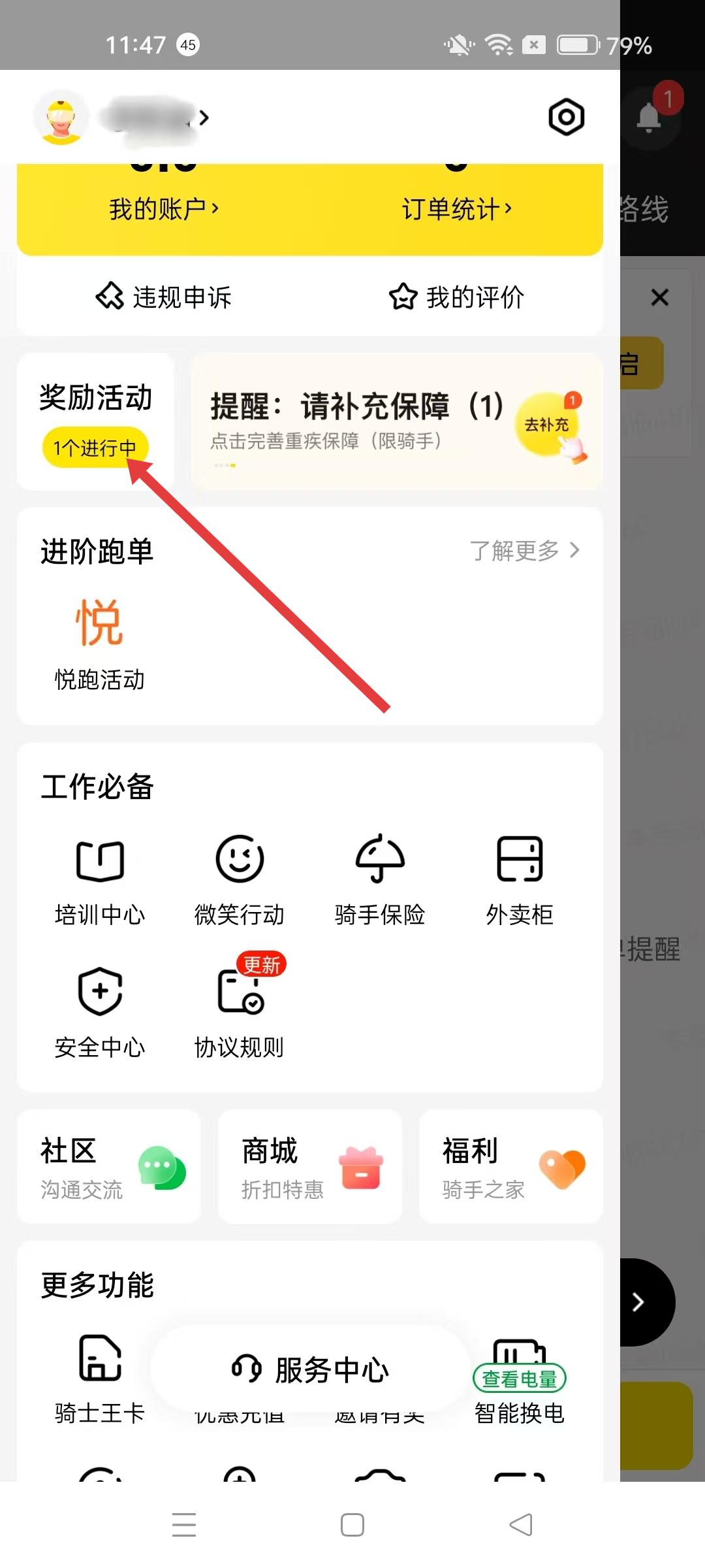 2、展開的菜單中,找到獎(jiǎng)勵(lì)活動(dòng)板塊下的悅跑活動(dòng)入口,點(diǎn)擊進(jìn)入悅跑活動(dòng)介紹界面。