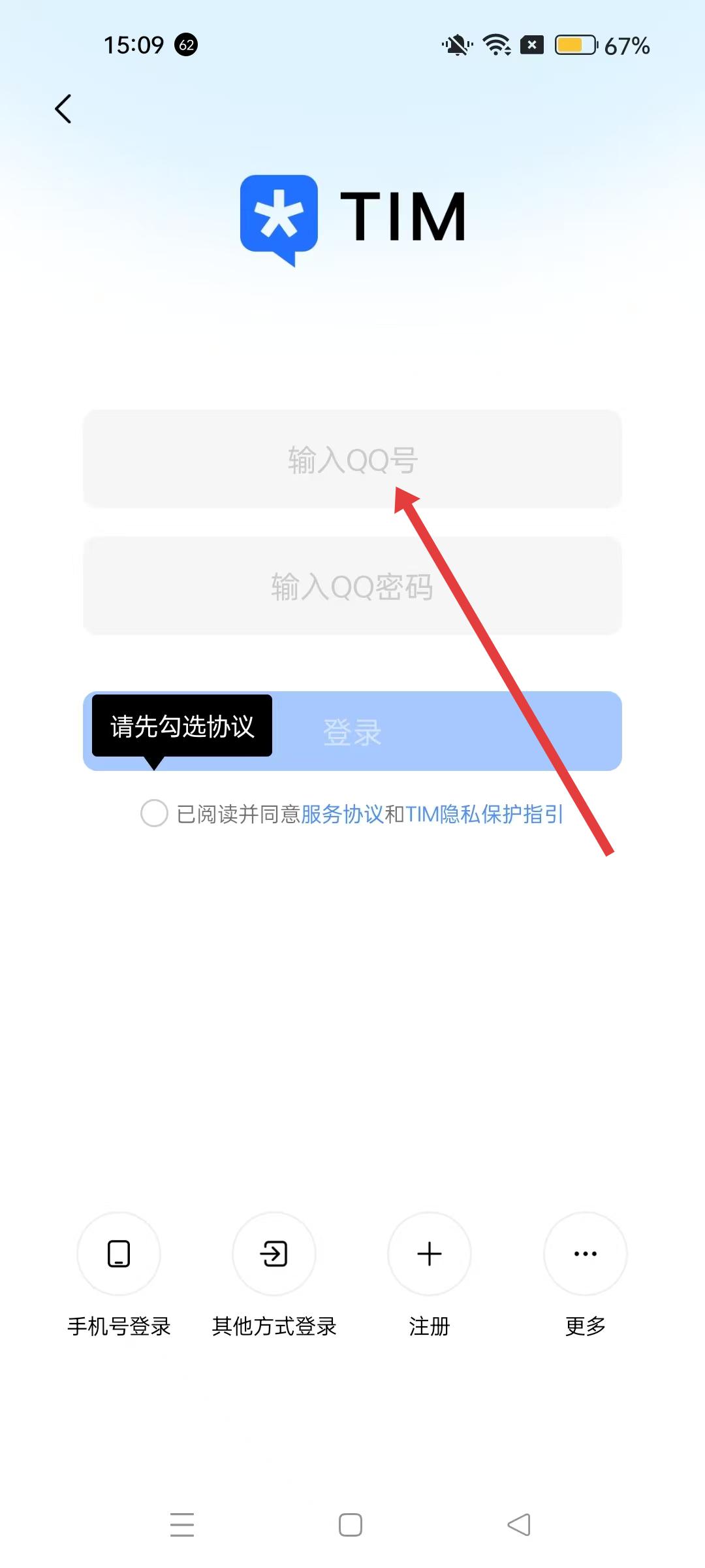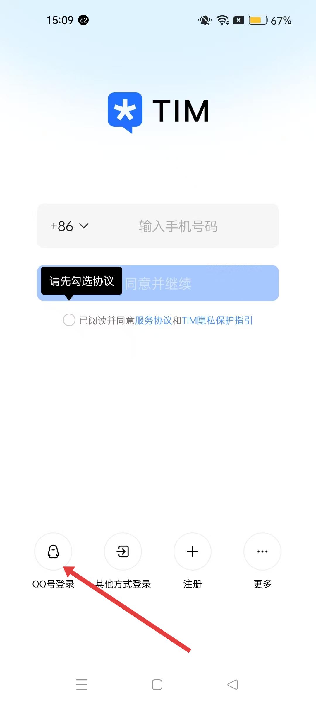 1、我們先要打開TIMAPP,點(diǎn)擊登錄按鈕,進(jìn)入登錄方式選擇頁(yè)面。