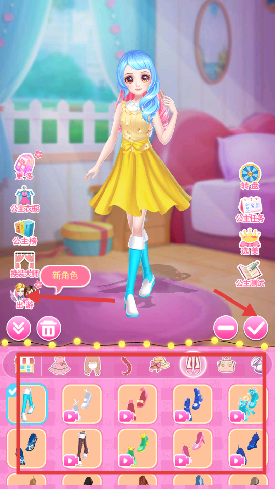1、在游戲里首先可對角色進行裝扮,界面下方有豐富的服飾、配飾等選項,打造出符合自己心意的二次元少女形象,裝扮好后點擊確認按鈕,完成角色的初步裝扮。