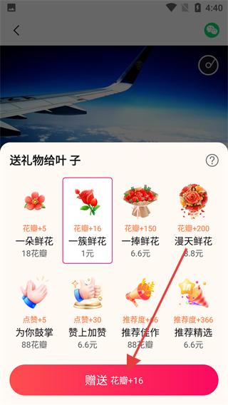 4、在送禮選項(xiàng)界面選擇合適的禮物,點(diǎn)擊贈(zèng)送花按鈕,完成給好友送禮物的操作,表達(dá)對(duì)好友動(dòng)態(tài)的喜愛(ài)與支持。