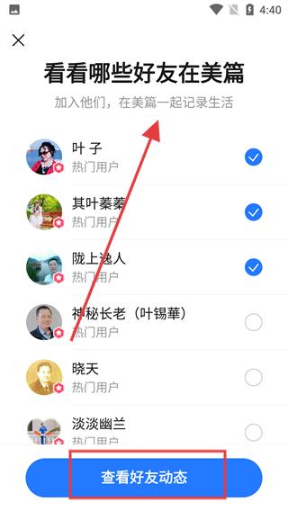 1、打開(kāi)美篇APP查看顯示的好友列表,選擇想要互動(dòng)的好友,點(diǎn)擊查看好友動(dòng)態(tài),進(jìn)入好友動(dòng)態(tài)頁(yè)面。