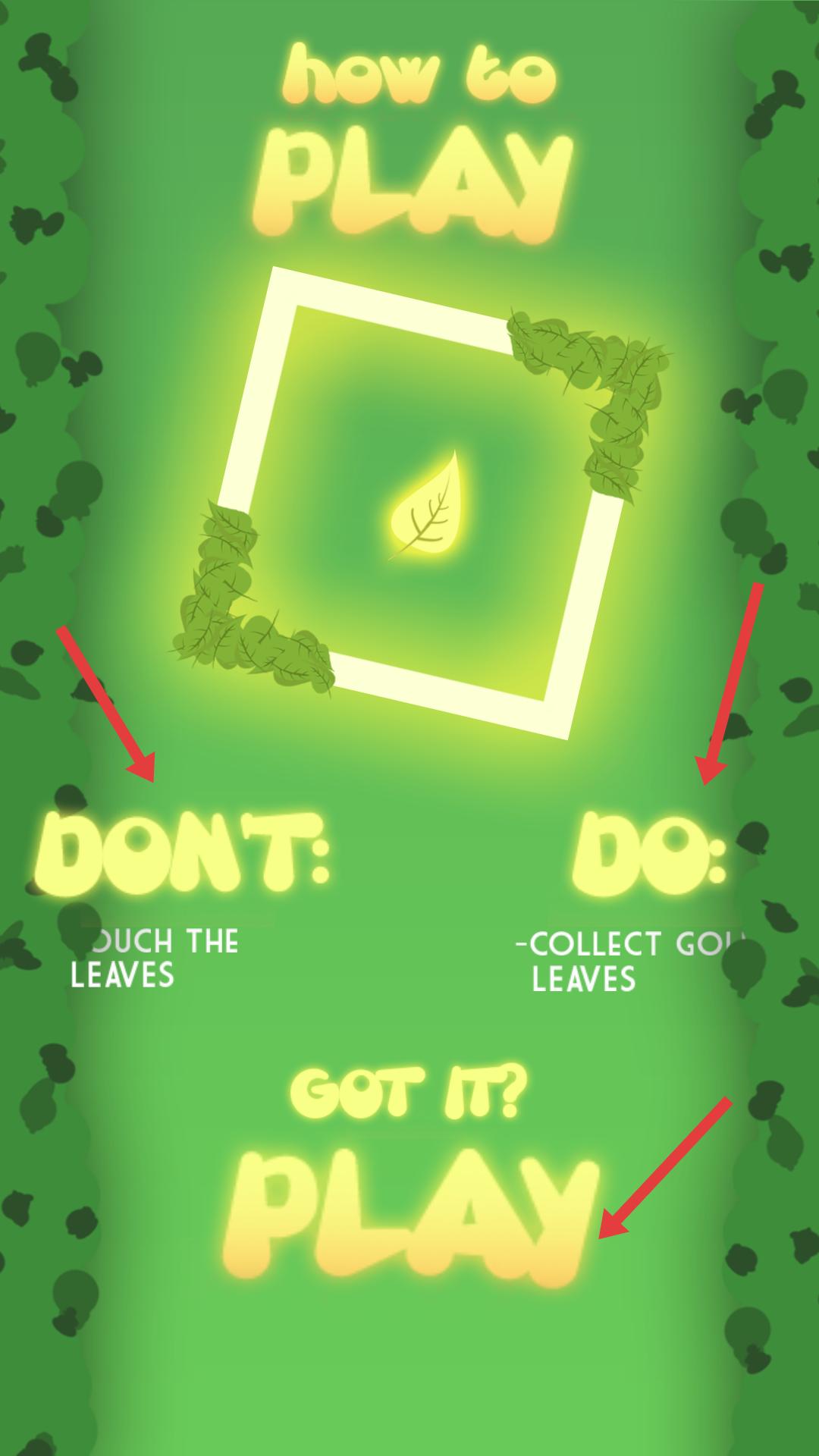 2、玩法說明界面提示,不要觸碰葉子,要收集金色葉子,明白規(guī)則后點擊PLAY按鈕,即可進入游戲?qū)嶋H操作場景。