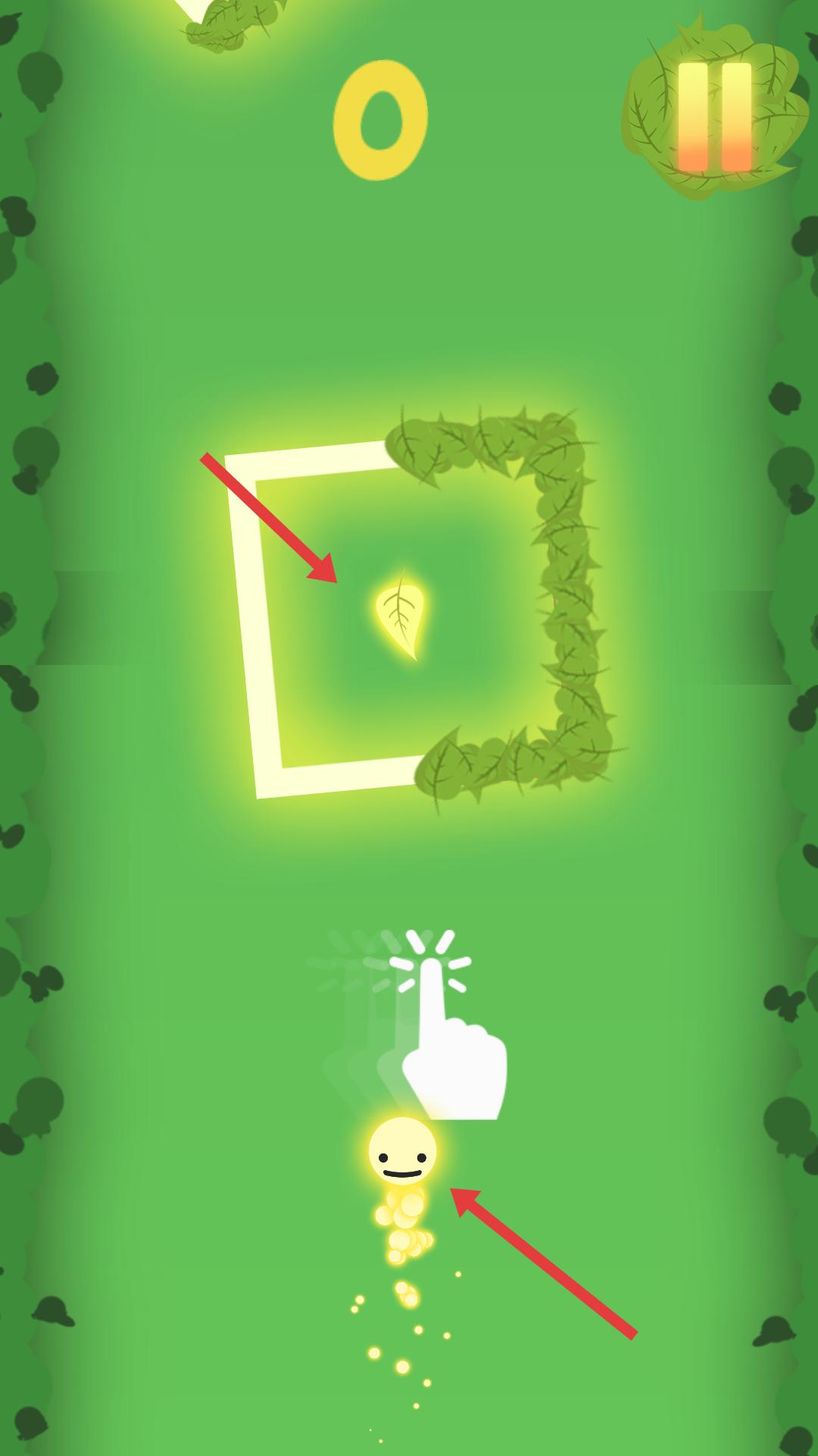 3、進入游戲后點擊屏幕操控小人移動,要避開葉子,瞄準(zhǔn)金色葉子收集,同時注意上方的圓環(huán)等元素,靈活操作小人。