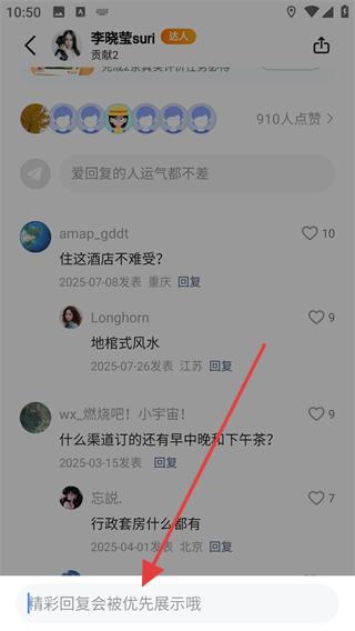 4、輸入完評論內(nèi)容后,點擊發(fā)布,完成評論操作,也可對其他用戶的評論進(jìn)行點贊、回復(fù)等互動。
