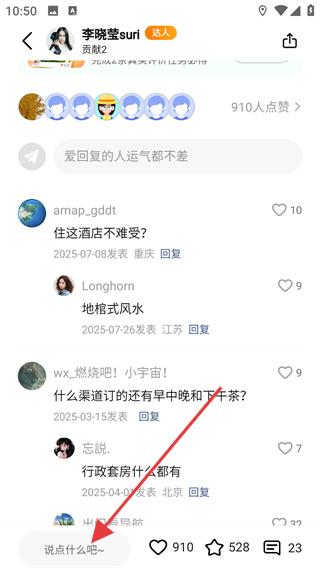 2、在地點詳情頁可查看該地點的介紹、用戶評論等信息,若想發(fā)表評論,點擊輸入框,輸入評論內(nèi)容。