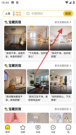 4、搜索結(jié)果出來后看到展示的各類寶藏民宿,可點(diǎn)擊更多寶藏民宿,瀏覽更多民宿選項(xiàng),挑選符合自己需求的民宿。