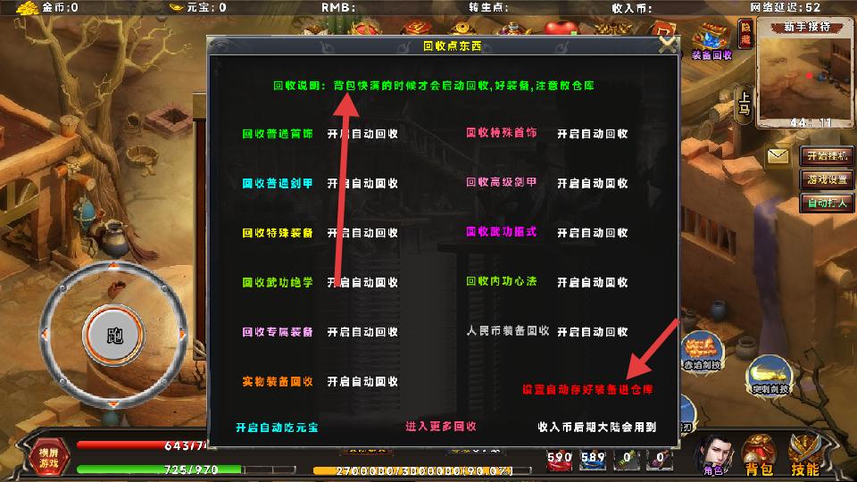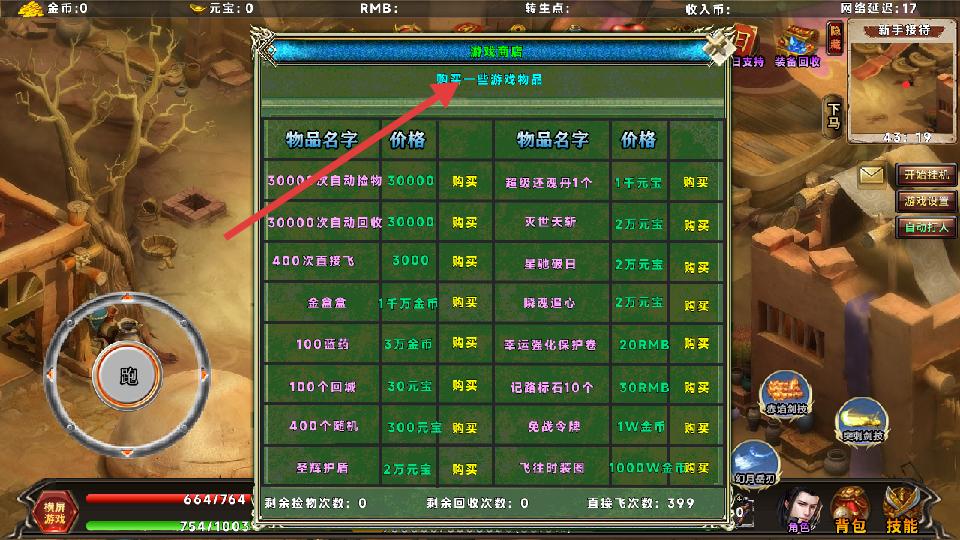 4、進入游戲商店消耗金幣、元寶購買自動撿物、回收等道具,提升掛機與探索效率,借助道具助力角色成長,挑戰(zhàn)更高難度。