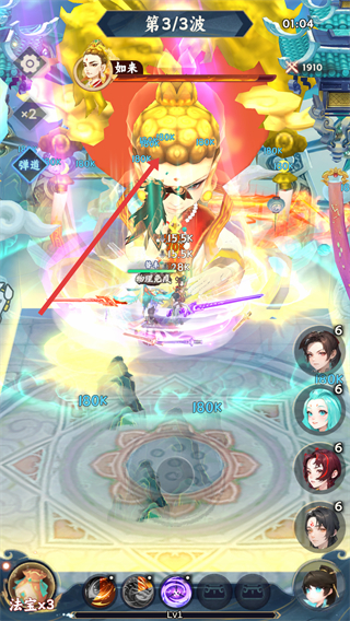 2、會遇到如來等強力首領(lǐng),集中火力攻擊首領(lǐng),注意首領(lǐng)血量,持續(xù)攻擊直至擊敗。