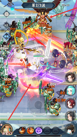 1、需應對多波敵人,包括強力敵人,使用技能和法寶攻擊敵人,造成大量傷害,推進波次進度。