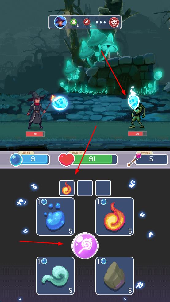 2、釋放符文后可拖入上方槽位,點擊中間施法按鈕觸發(fā)組合技,把控魔力消耗,持續(xù)輸出壓制敵人,逐步削減其血量。