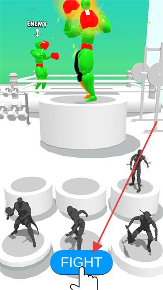 2、選擇好要出戰(zhàn)的英雄后點擊下方的FIGHT按鈕,此時英雄會被放置到對戰(zhàn)區(qū)域,準備與敵人展開戰(zhàn)斗。