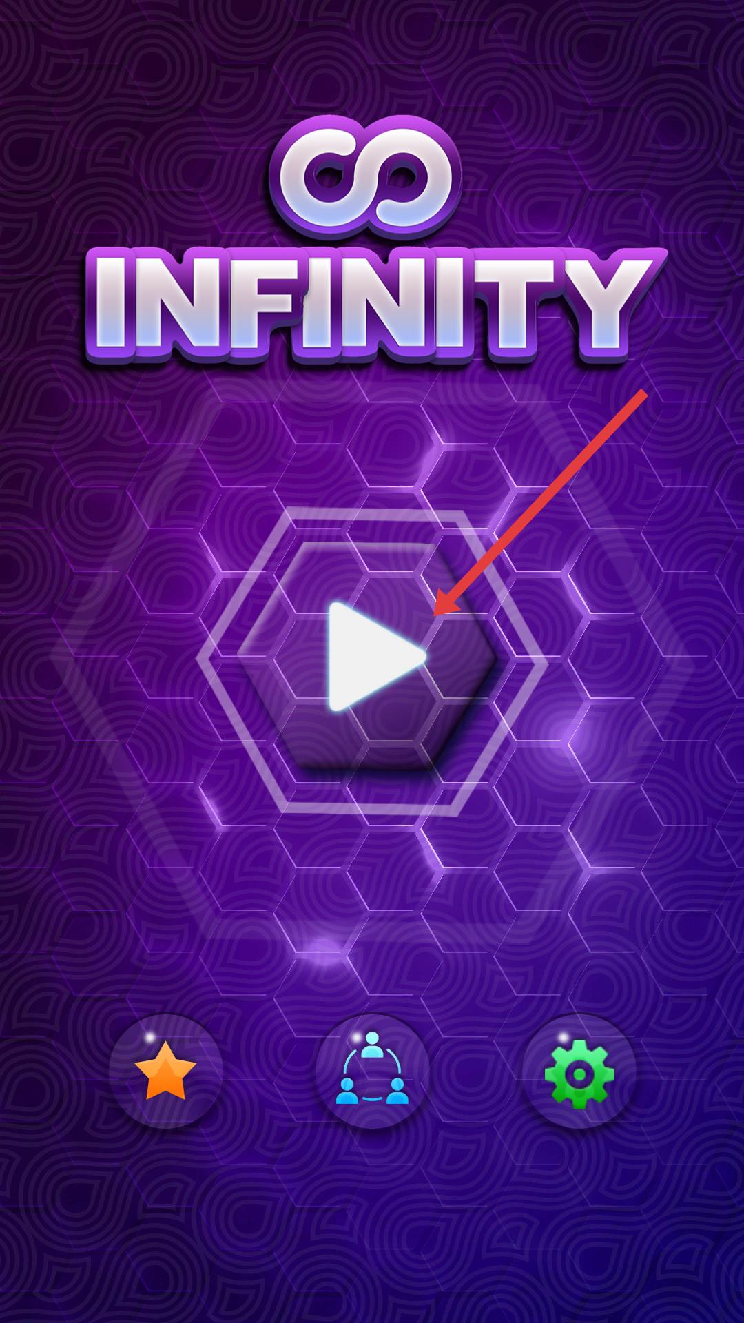 1、游戲主界面有六邊形內(nèi)的白色三角形開始按鈕,點(diǎn)擊該按鈕,即可進(jìn)入游戲,開啟挑戰(zhàn)之旅。