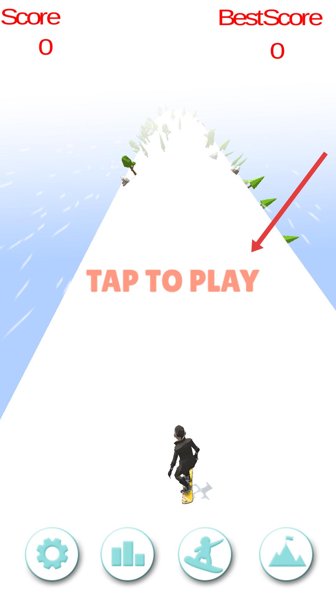 1、游戲初始界面,點(diǎn)擊開始即可操控角色開始滑雪,在雪道上滑行,開啟游戲挑戰(zhàn)。