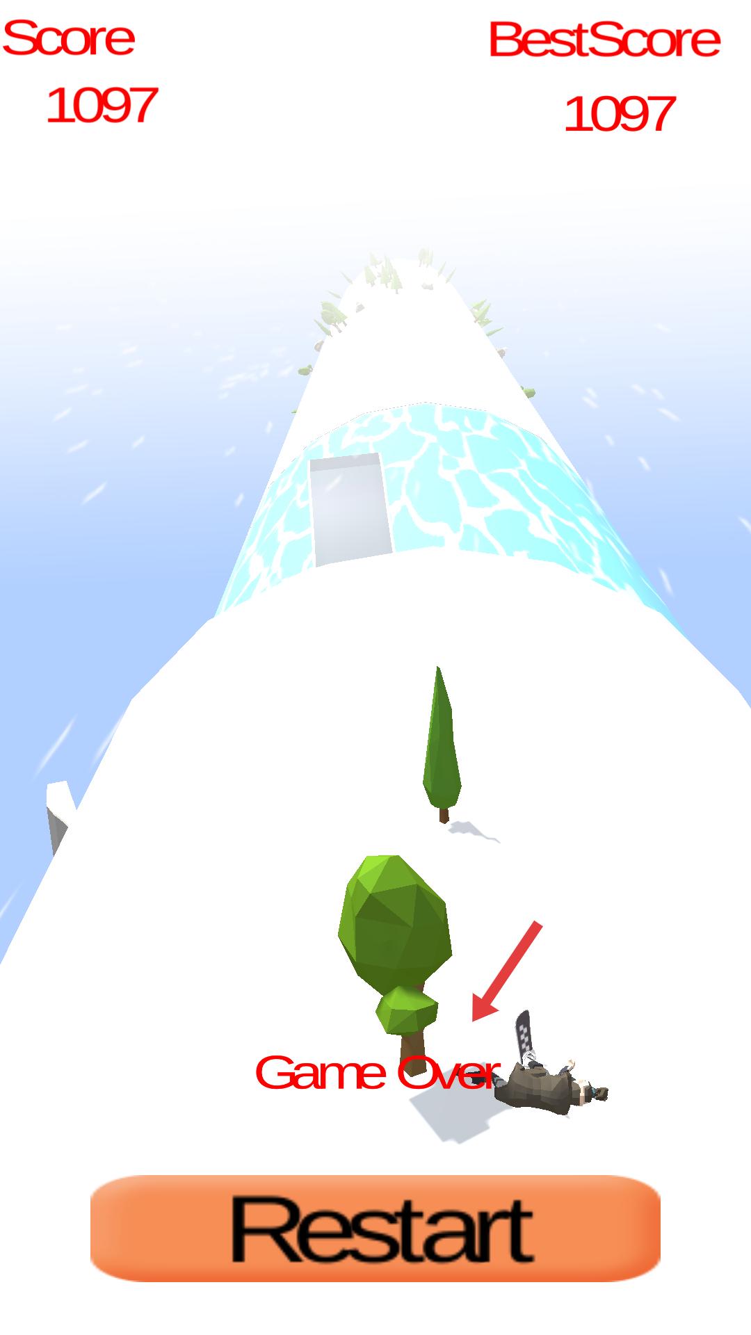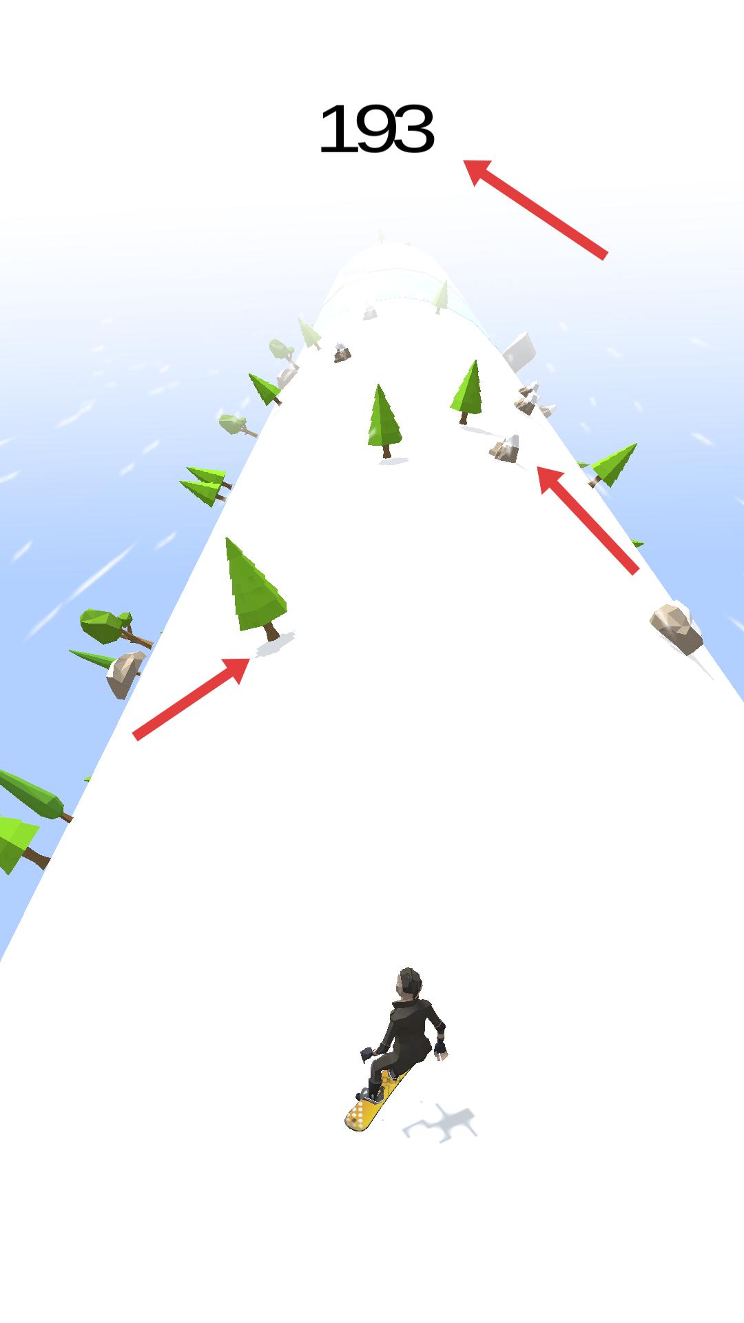 2、滑雪過程中要避開雪道上的樹木、石塊等障礙物,同時(shí)關(guān)注上方分?jǐn)?shù),盡可能滑行更遠(yuǎn),獲取更高分?jǐn)?shù)。