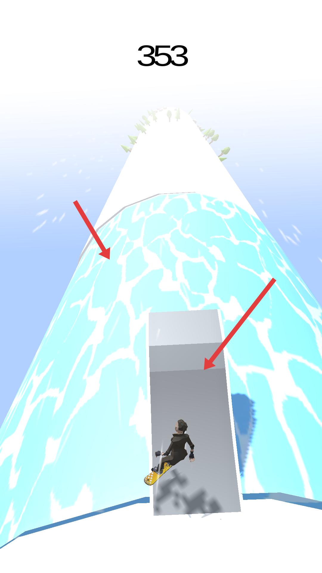 3、遇到冰制的特殊路段和通道時(shí),操控角色進(jìn)入通道,可獲得特殊效果或分?jǐn)?shù)獎(jiǎng)勵(lì),繼續(xù)向更遠(yuǎn)距離滑行。