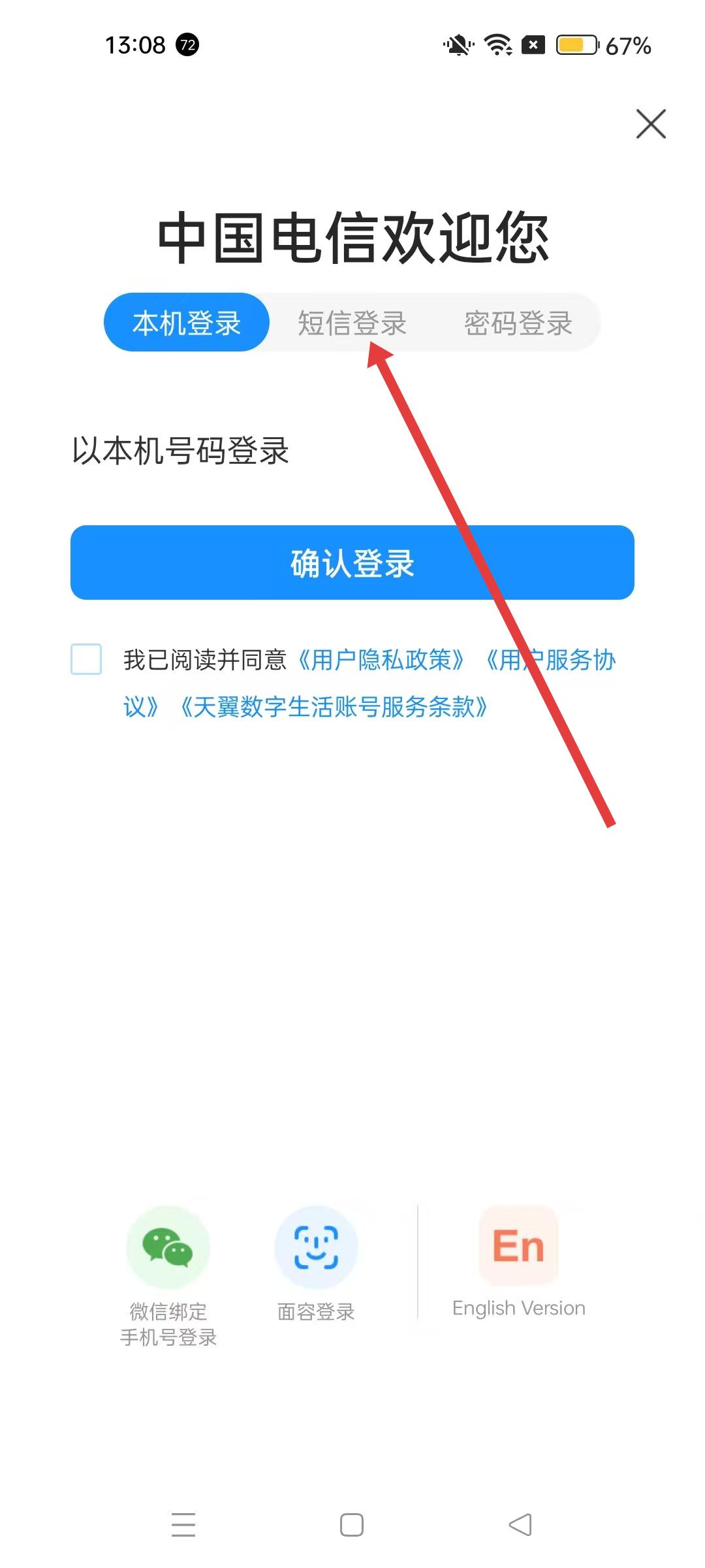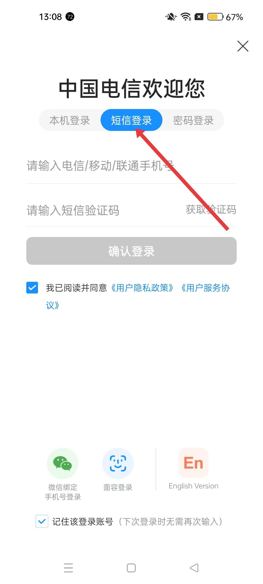3、選擇短信登錄,輸入電信、移動或聯(lián)通手機(jī)號,獲取并輸入短信驗(yàn)證碼,勾選同意相關(guān)協(xié)議。