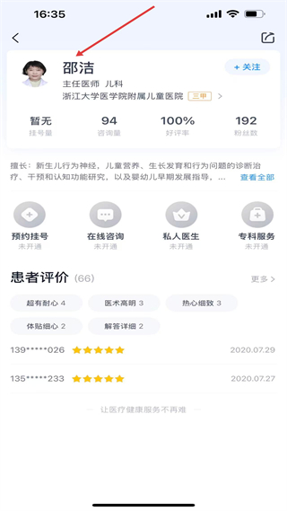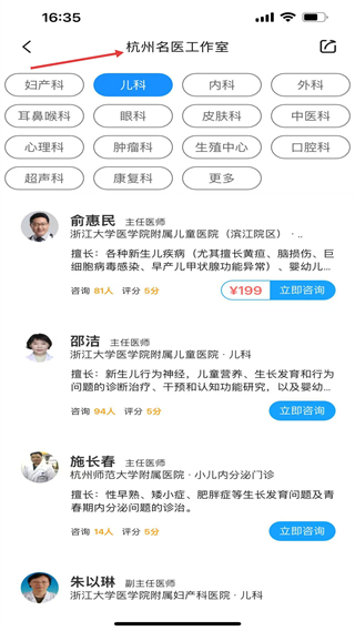 3、杭州名醫(yī)工作室兒科有俞惠民、邵潔等名醫(yī),邵潔擅長(zhǎng)新生兒行為神經(jīng)等,咨詢量94,評(píng)分5分,可立即咨詢。