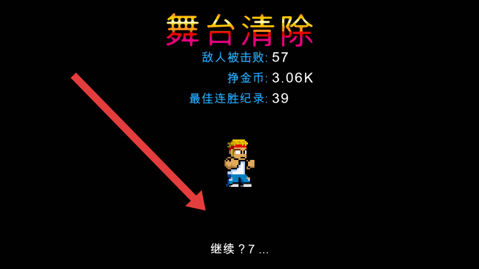 3、在完成一波敵人的清除后,會出現(xiàn)類似第一張圖的結(jié)算界面,顯示敵人被擊敗數(shù)量、掙金幣數(shù)量、最佳連勝紀(jì)錄等信息,等待幾秒即可進(jìn)入下一關(guān)游戲。