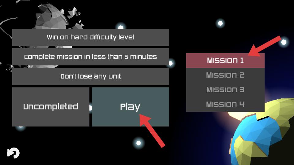 3、進(jìn)入任務(wù)選擇界面,可選擇Mission1,Mission2等任務(wù),選好后點(diǎn)擊Play,開始執(zhí)行任務(wù)。
