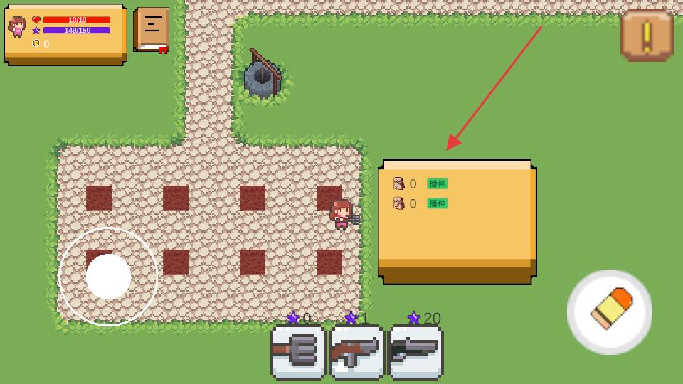 3、角色在農(nóng)田場(chǎng)景,查看資源,獲取鋸樹、播種道具,完成收集,積累資源,解鎖新任務(wù)。